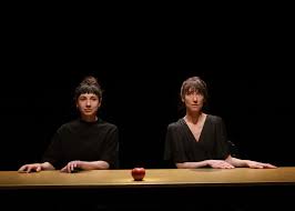 Sur la table, une pomme rouge empoisonnée dans la quelle on a envie de croquer (tiens, ça nous rappelle
